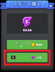 ただし「コインで購入」や広告視聴でスタミナを補充することも可能です。