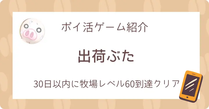 【ポイ活】出荷ぶた(30日以内に牧場レベル60[周回数60]到達)クリア
