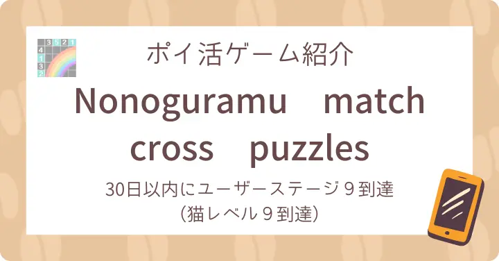 今回は、ポイ活ゲーム案件「Nonogramu match-cross puzzles」に挑戦してみました!ロジックパズルをどんどん解いていくタイプのゲームで、パズルが好きな方には特におすすめです。この案件の達成条件は「ユーザーステージ10到達(猫レベル10到達)」までの... その他